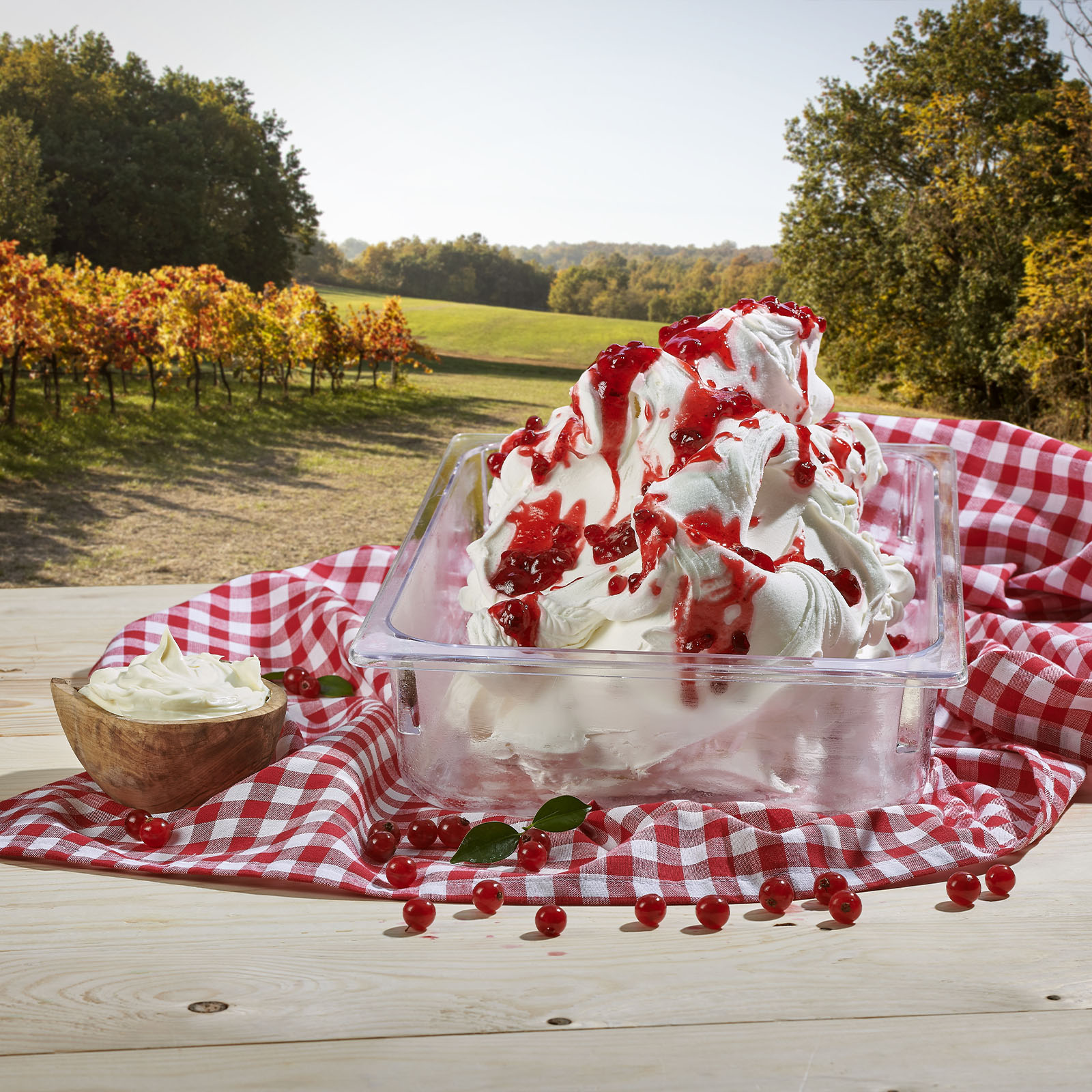 Variegate with a fresh and strong lingonberry flavour. With whole lingonberries making it ideal for enriching all yogurt-based gelato preparations or as a tart contrast to sweeter flavours.